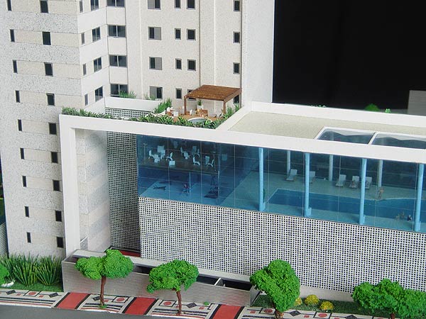 Maquete realizada para auxiliar na comercialização do empreendimento e estudo do projeto arquitetônico.