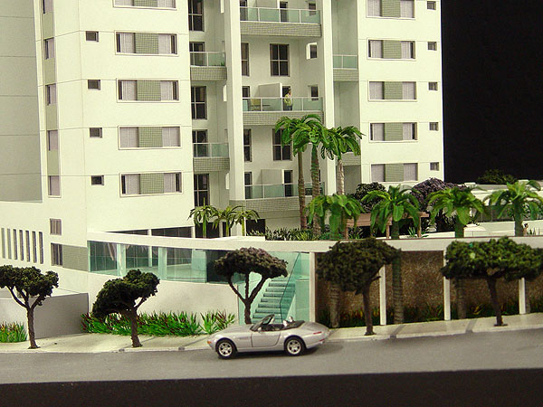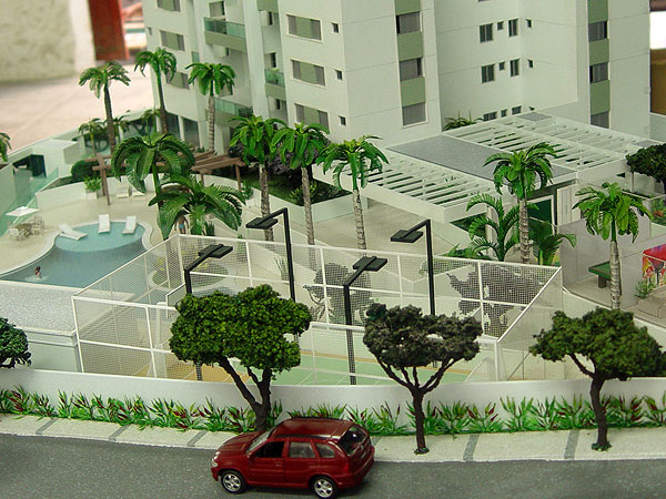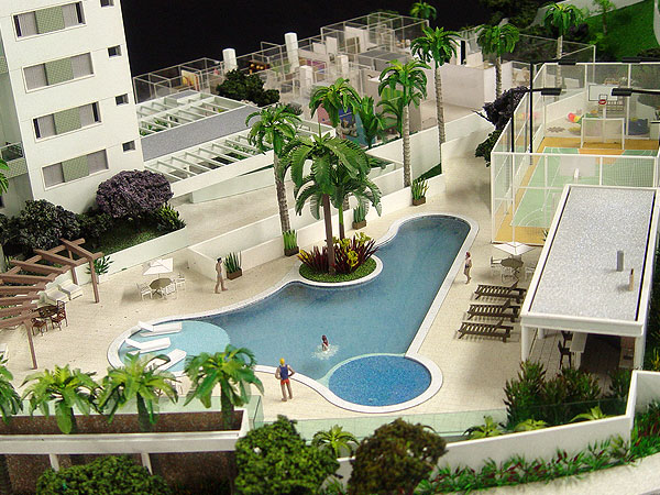 Apresentação de condomínio fechado com torres residenciais e área de lazer para comercialização junto ao público alvo.