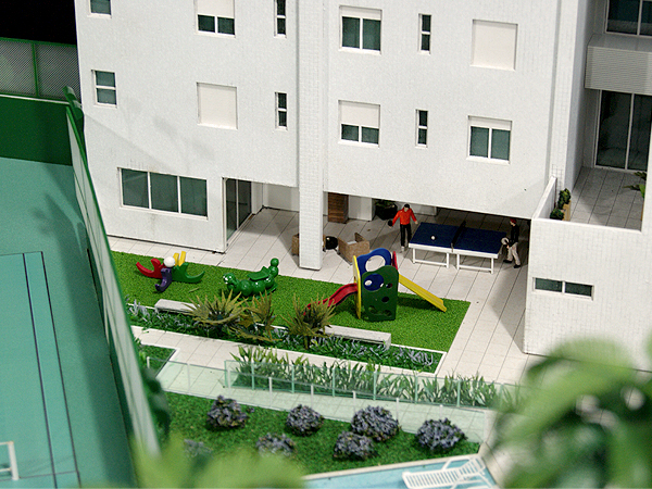 Apresentação de residencial com área de lazer para comercialização junto ao público alvo.