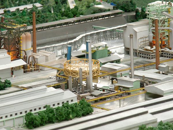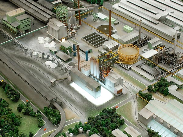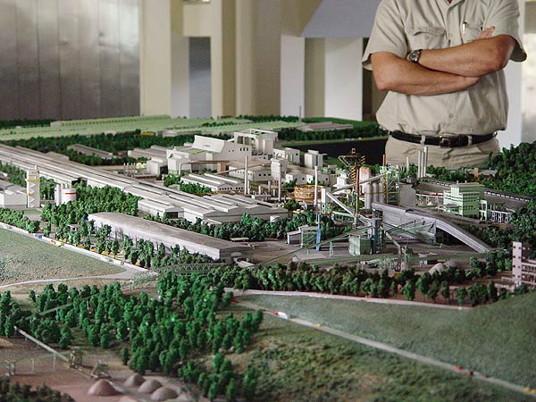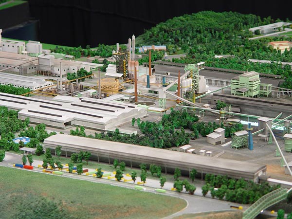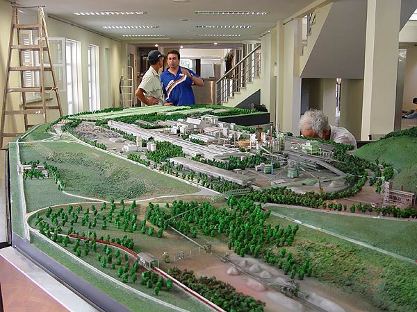 Maquete realizada para apresentação da implantação da usina e seus processos produtivos para técnicos e comunidade.