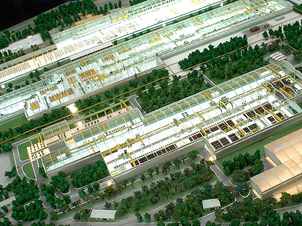 Maquete realizada para apresentação da implantação da usina e seus processos produtivos para técnicos e comunidade.