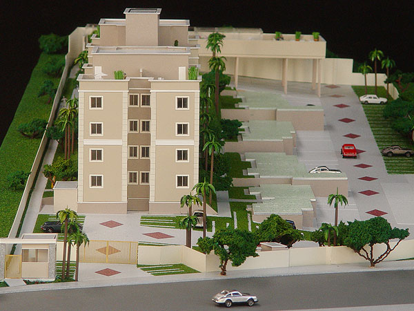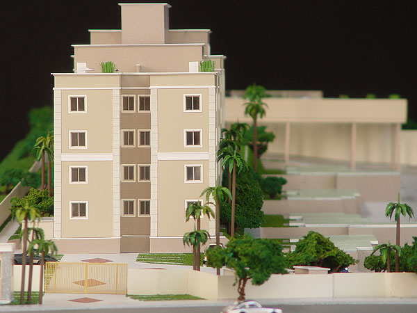 Apresentação de condomínio fechado com torres residenciais e área de lazer para comercialização junto ao público alvo.