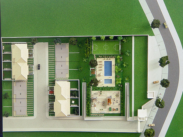 Apresentação de condomínio fechado com casas germinadas e área de lazer para comercialização junto ao público alvo.